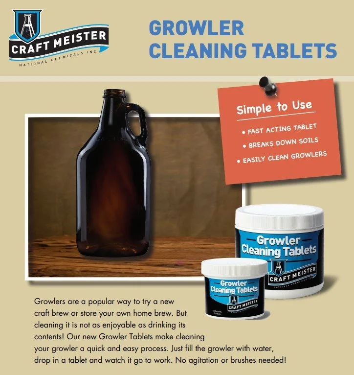 Fast-acting Growler Tablets fit easily through the narrow neck to clean growlers - no brushes or agitation needed! Fill growler with warm water, add 1 tablet, and watch as soils break down in just minutes.